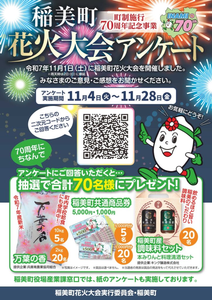 稲美町花火大会アンケートは、以下のURLからご回答ください。